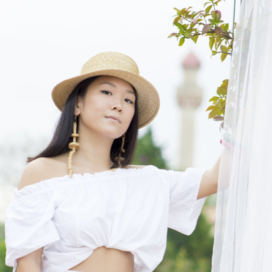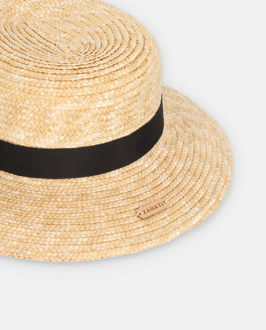 Sombrero de paja Canotier copa baja ala S Blanco roto