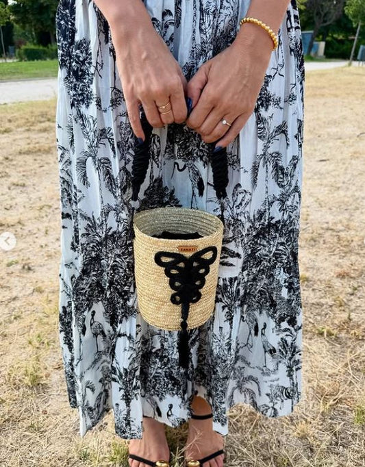 Hatbag Mini de paja de trigo Negro