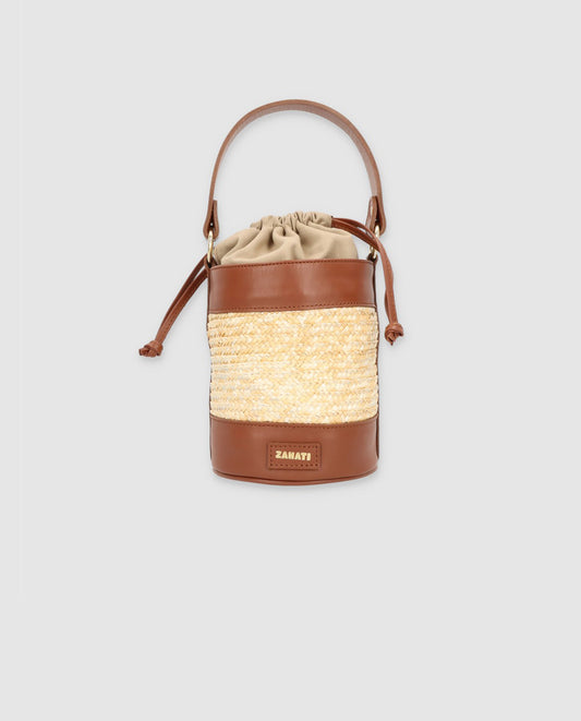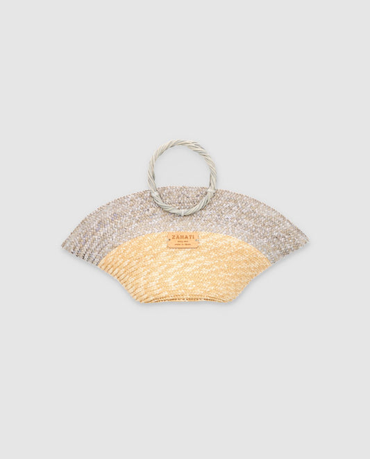 Hatbag Mini bicolor gris y natural de paja de trigo