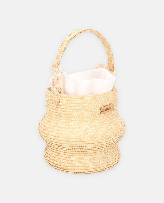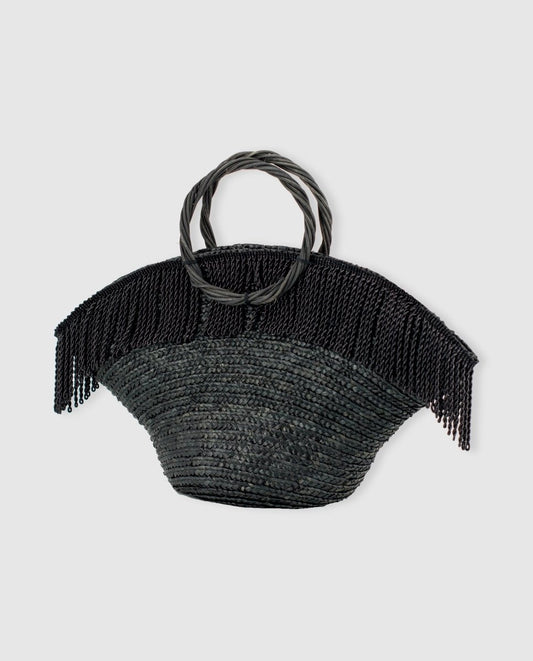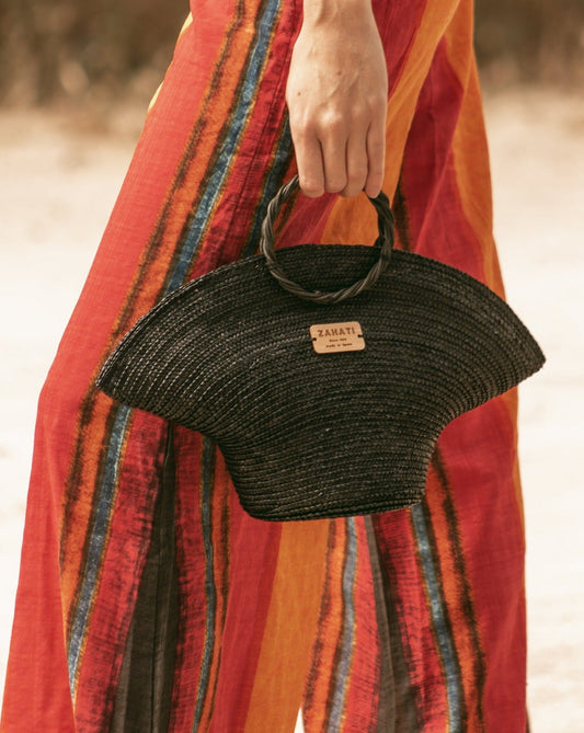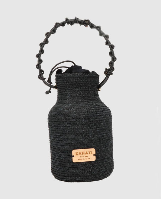 Hatbag Mini Cebra de paja de trigo negro-natural