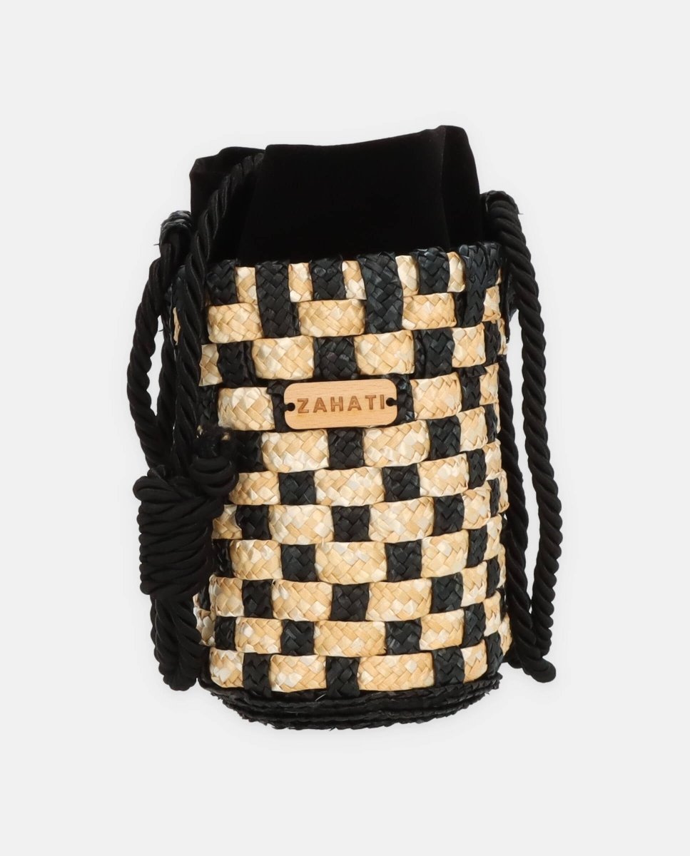 The tris-tras duo bag is hand-braided with wheat straw. A bag where each of its fibers have been braided one by one. For this design we have created the black and natural dye. Both colors contrast and create the Tris-Tras bag. The cord is silk braided and the height can be adjusted. It is a small and comfortable bag where you can carry all the essentials.