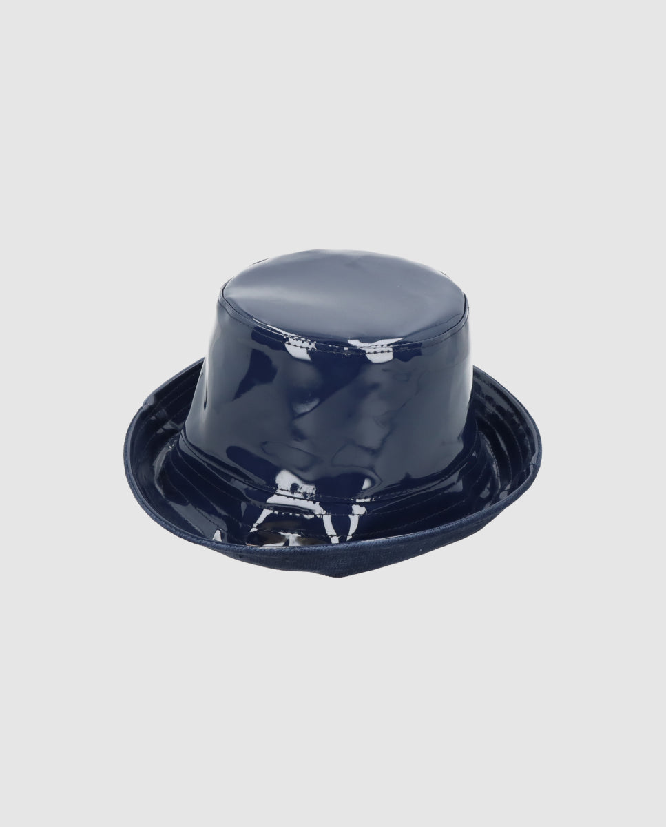 El sombrero Charolito es ideal para los dias de otoño invierno. Esta hecho en color azul marino . Forrado con terciopelo azul marino. Es perfecto para lucir ideal en invierno con el toque super glamoroso que te dará el charol.