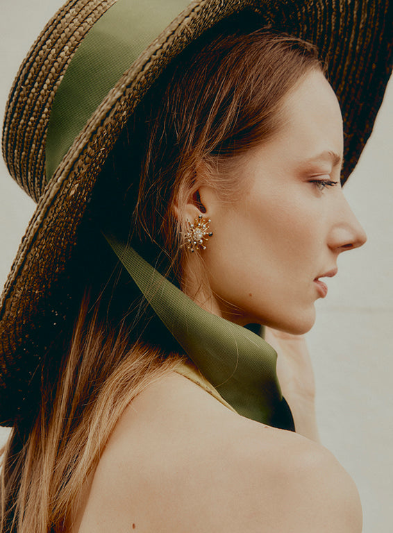 The cuchi flow hat is a very romantic hat for both daily use and any event. It is made of olive-colored straw. The ribbon is multifunction since you can wear it tied under the neck, tie it around the cup or change the ribbon for another color. Cup height 9cm, brim size 15cm.