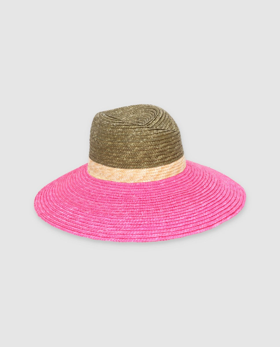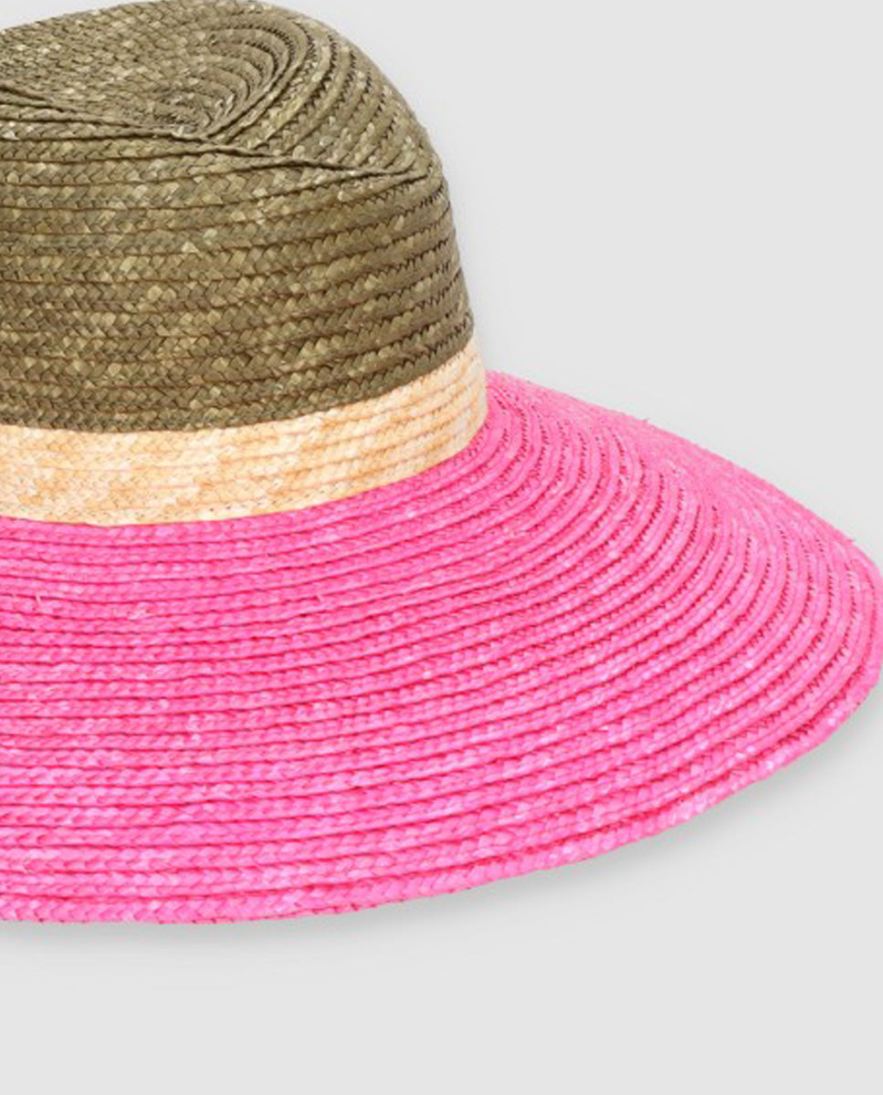 The Beetle hat is characterized by its notched crown and semi-slanted brim. This hat is made with a purple crown and an orange brim. The built-in tape is multifunction. You can carry it in two ways. Knotted under the neck or tied around the cup. You can also change that ribbon for another of the color you want, since the hat has holes built into the crown. Made with wheat straw in our Gata de Gorgos workshop. Crown height 8cm, brim length 12cm.