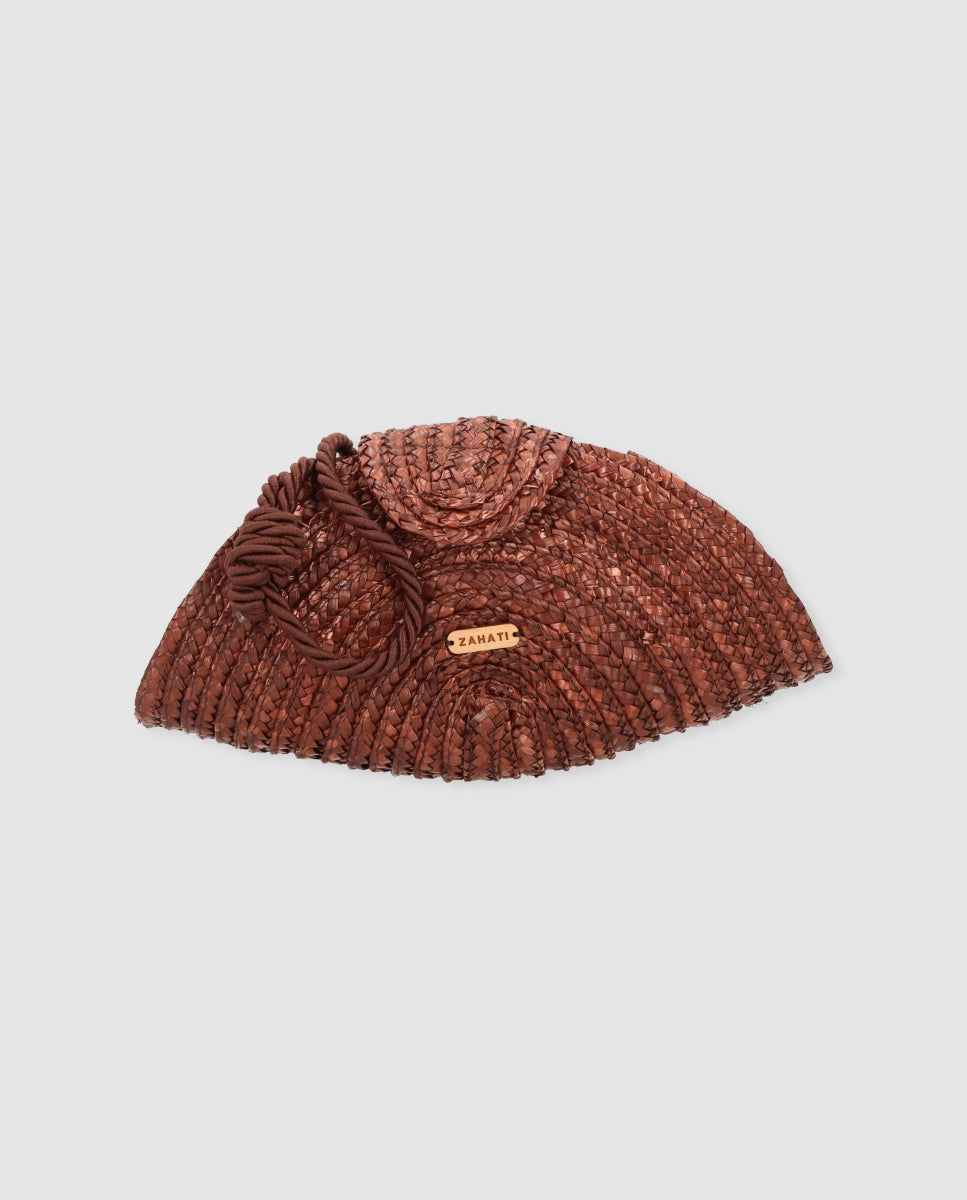 La cartera Chloe es ese bolso tipo clutch que eleva cualquier look en un segundo. Está realizada artesanalmente en paja trenzada, con un diseño semicircular de inspiración retro y mucha textura, ligera pero con cuerpo.