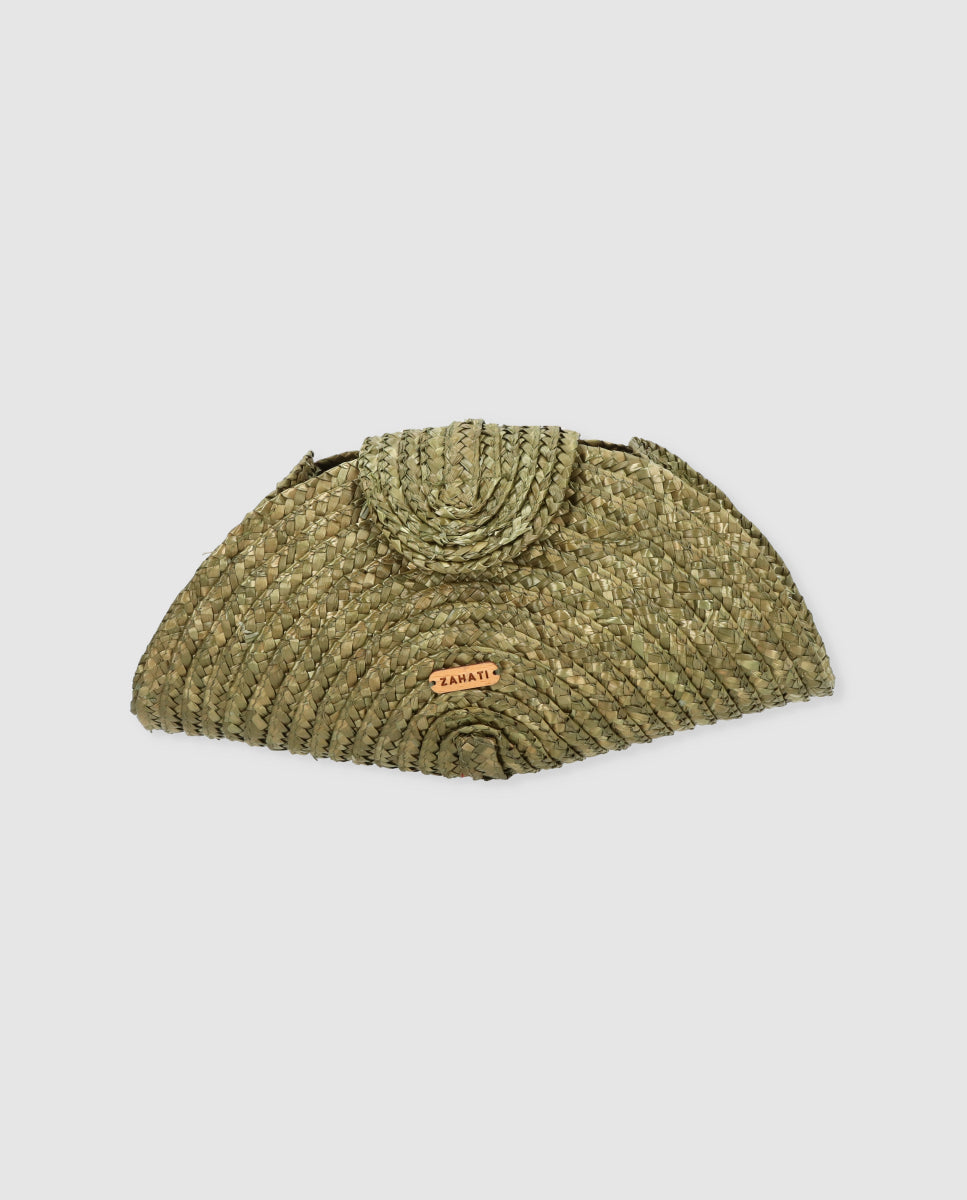 La cartera Chloe es ese bolso tipo clutch que eleva cualquier look en un segundo. Está realizada artesanalmente en paja trenzada, con un diseño semicircular de inspiración retro y mucha textura, ligera pero con cuerpo.