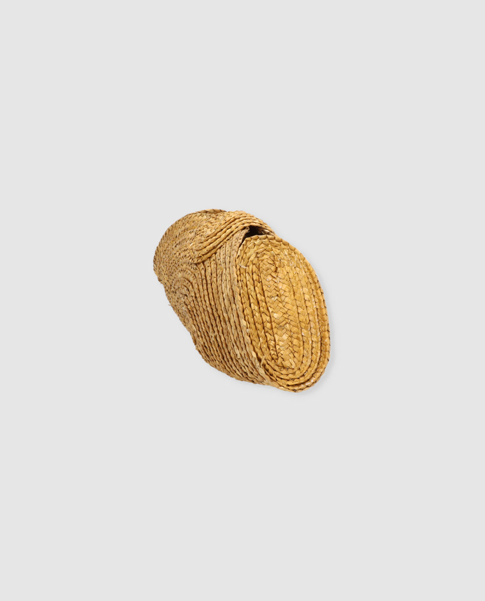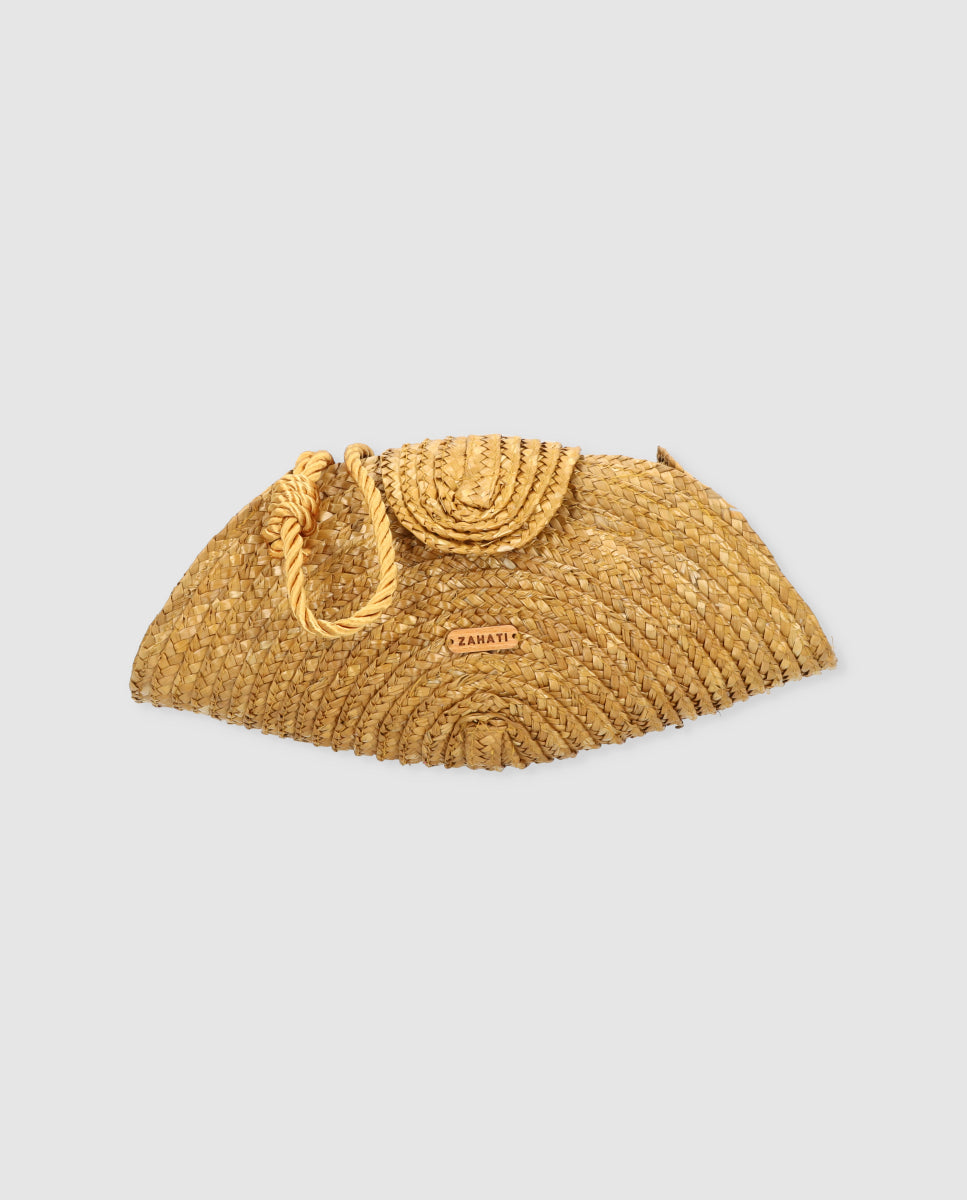 La cartera Chloe es ese bolso tipo clutch que eleva cualquier look en un segundo. Está realizada artesanalmente en paja trenzada, con un diseño semicircular de inspiración retro y mucha textura, ligera pero con cuerpo.