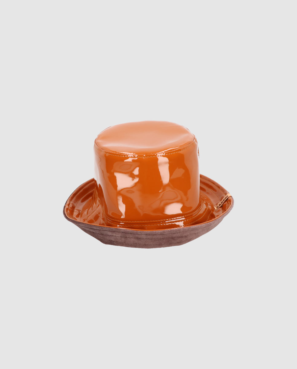 El sombrero Charolito es ideal para los dias de otoño invierno. Esta hecho en color tundra y forrado con terciopelo marron oscuro. Es perfecto para lucir ideal en invierno con el toque super glamoroso que te dará el charol.