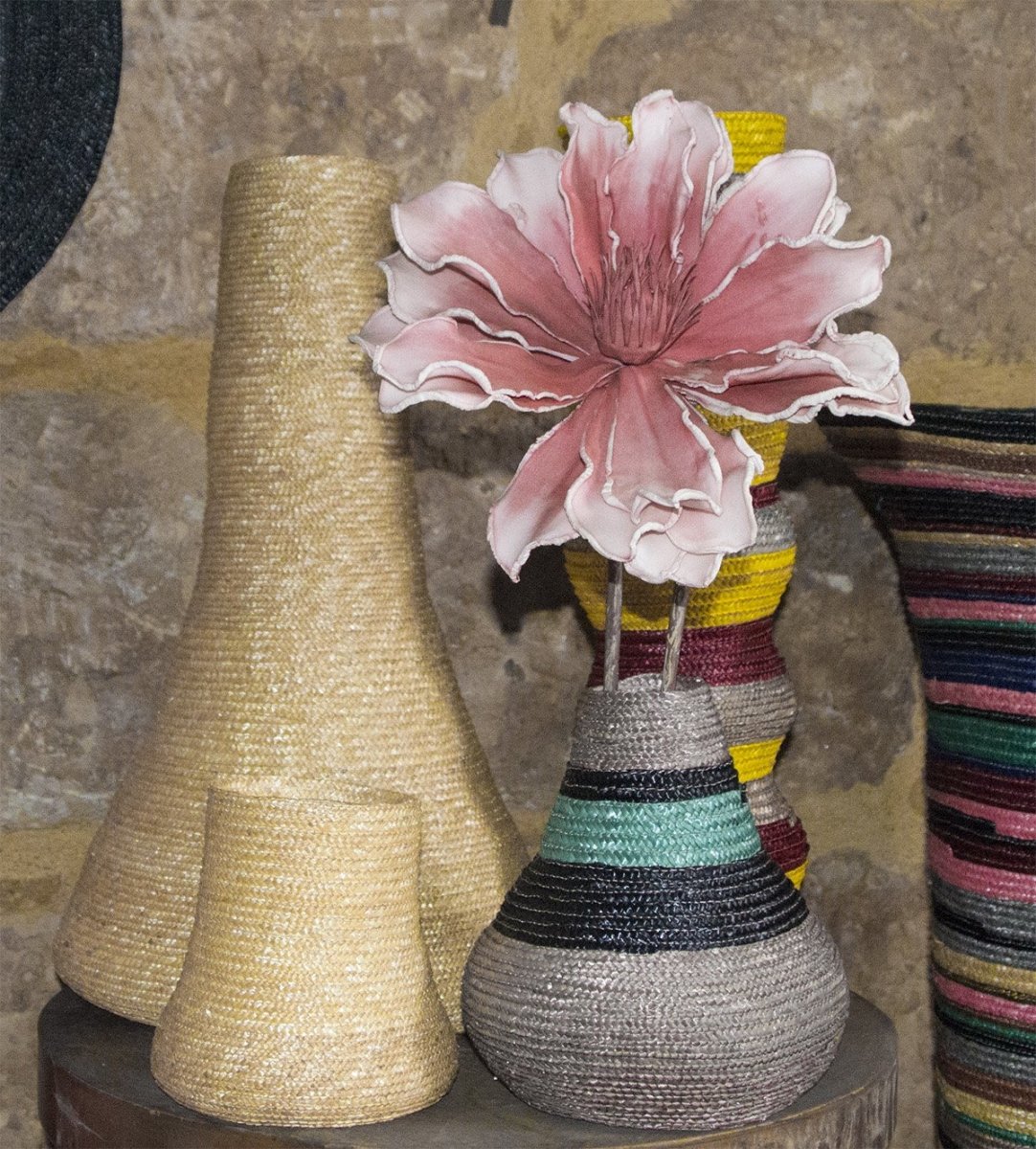 El Jarrón Manzana de paja natural, diseñado y confeccionado en nuestro taller de Gata de Gorgos.