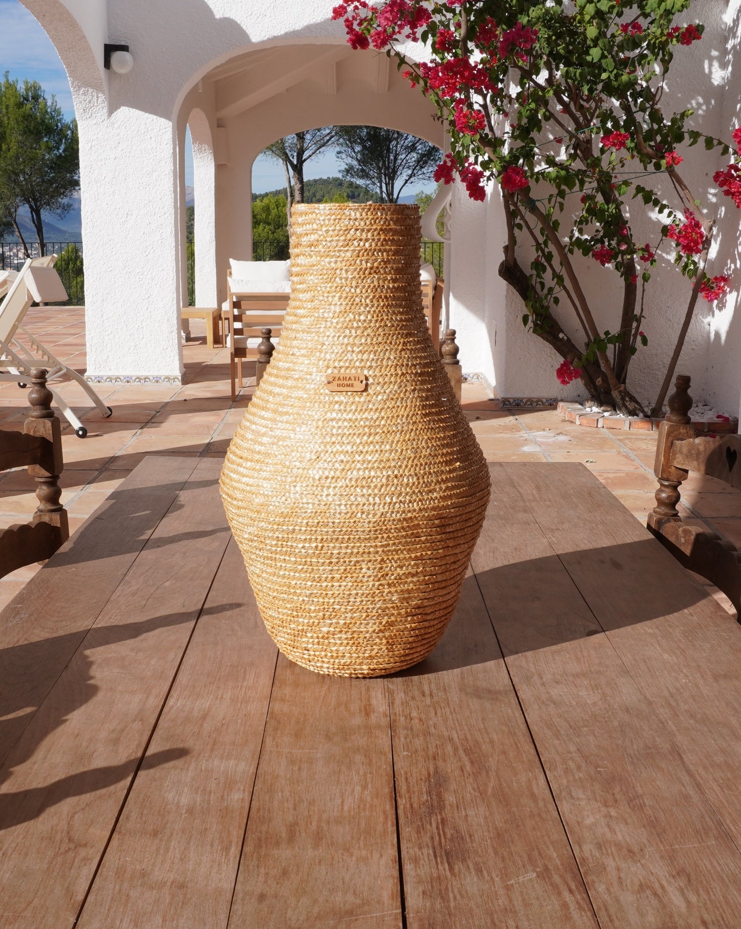 El Jarrón Banana de paja natural, diseñado y confeccionado en nuestro taller de Gata de Gorgos.