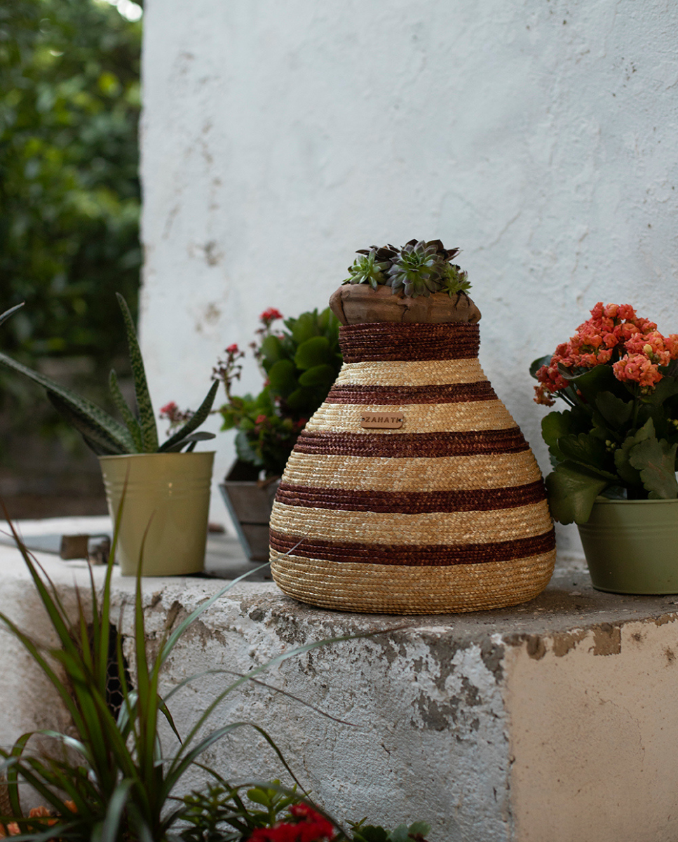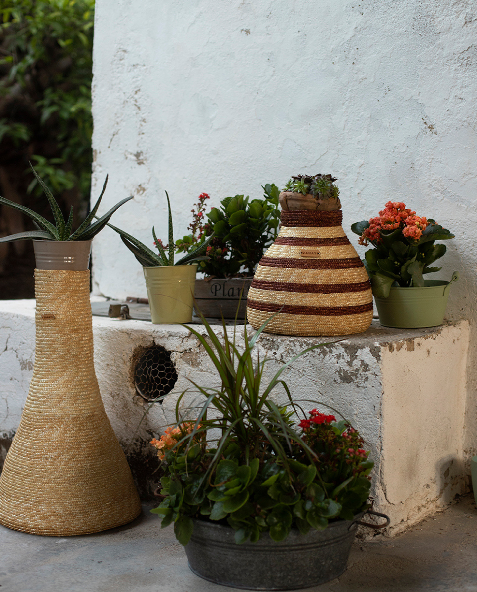 El Jarrón Sandia de paja natural, diseñado y confeccionado en nuestro taller de Gata de Gorgos.