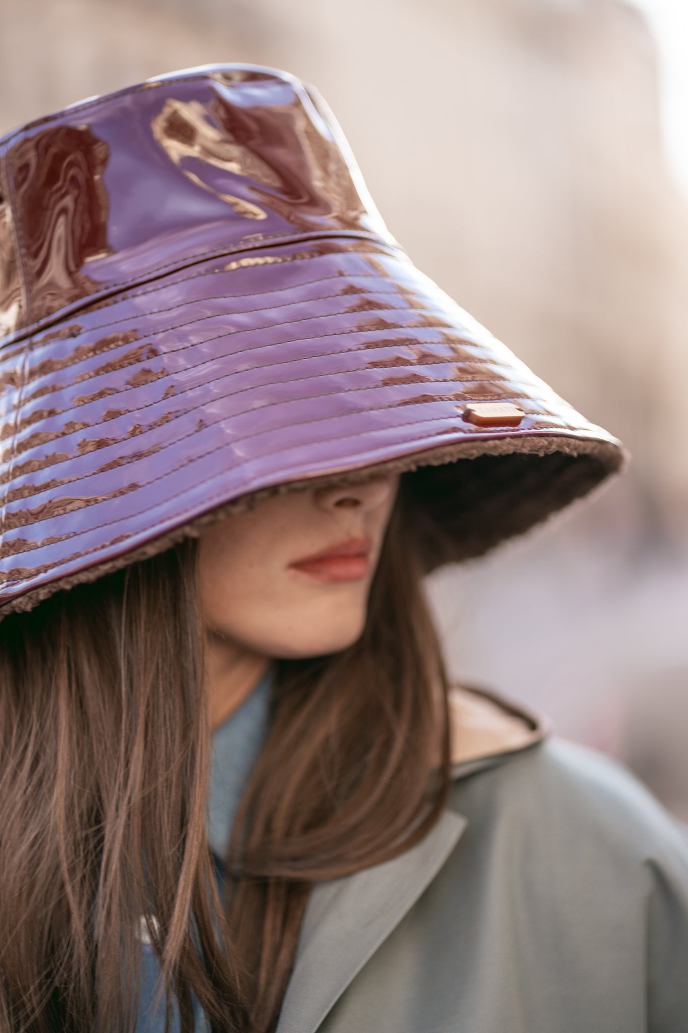 El sombrero Charolito es ideal para los dias de otoño invierno. Esta hecho en color burdeos Forrado con borreguito de algodón color marrón oscuro. Es perfecto para lucir ideal en invierno con el toque super glamoroso que te dará el charol.