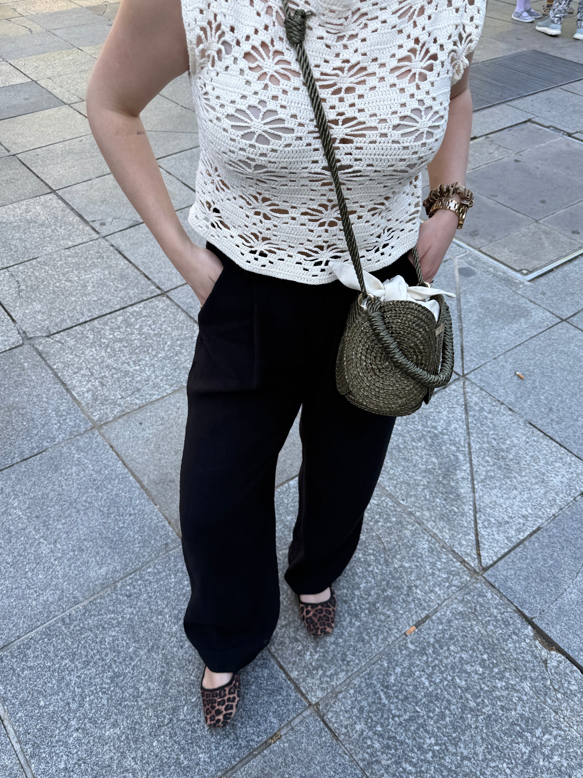 El bolso Yang oliva es un bolso que te encantará. Esta hecho con pequeñas formas ciruculares de paja de trigo. El asa de mano es un cordón de seda trenzado y en su interior cuenta con un forro que anudas a modo lazo. Es un bolso original de inspiración retro. Incluye un cordón para que te lo puedas colgar y no tengas que llevarlo siempre de mano. Cada bolso Yang es único por cada parte artesanal que incorpora.