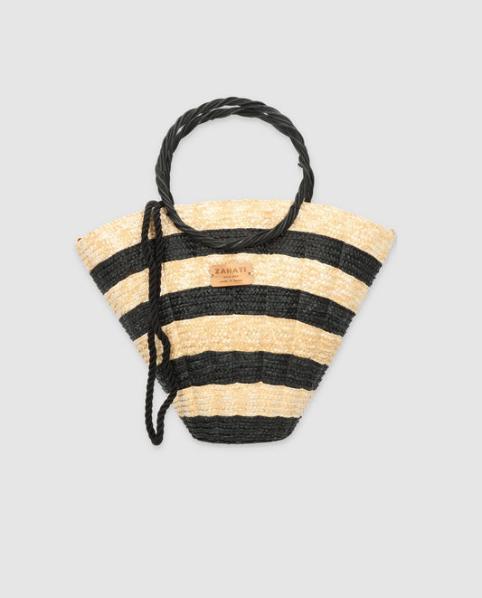 Hatbag Mini Zèbre en paille de blé noir-naturel