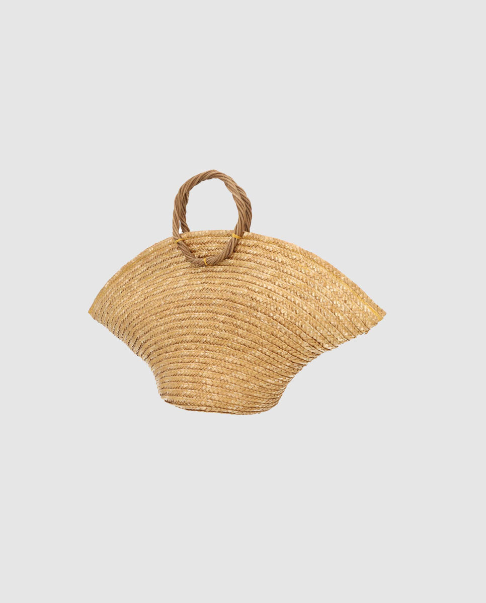 Le sac Hatbag est un sac à main inspiré d'un chapeau. La base du sac est la calotte d'un chapeau. C'est un sac idéal et pratique qui attirera l'attention partout. Il possède une bandoulière en soie tressée pour pouvoir le porter à l'épaule. Il est fabriqué en paille de blé tressée à la main et la anse est en moelle.