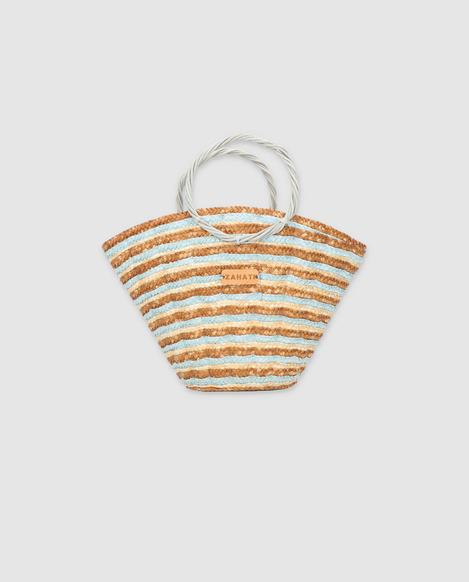 Le mini sac shelly s'inspire de la texture des coquillages. Il est cousu en formant de légères courbes autour du sac qui simulent cette texture. La version mini du sac shelly est idéale aussi bien pour un événement que pour un usage quotidien lors d'une journée printemps-été. Créé en camel, bleu bébé et paille de blé naturelle. Fermeture magnétique. Il dispose d'un cordon réglable pour accrocher votre sac. Dimensions : 18 cm de haut x 24 cm de long x 10 cm de profondeur.