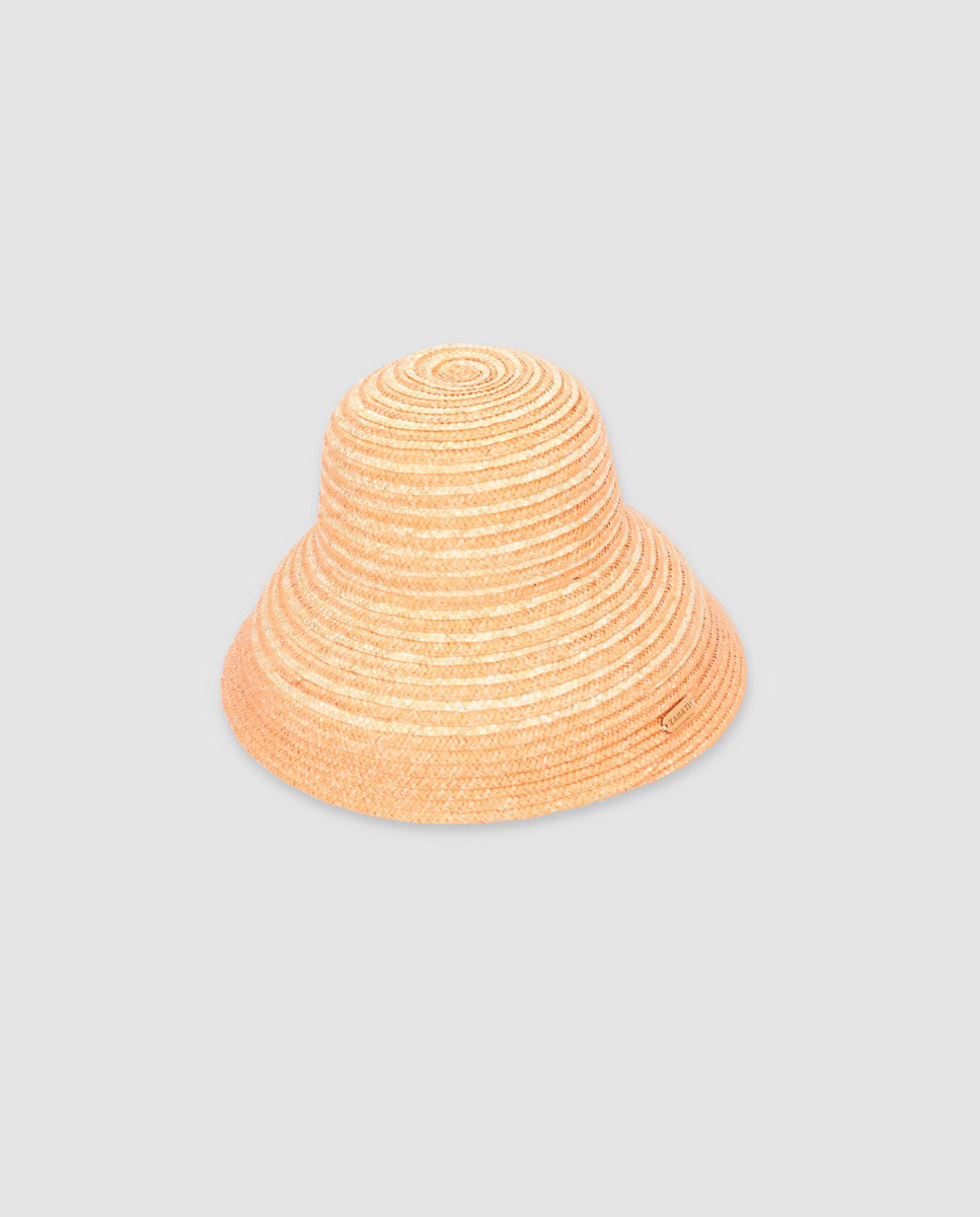 Le champignon spirale violet est un chapeau très amusant. La coupelle champignon ronde s'adaptera parfaitement à votre tête. Fabriqué dans des tons naturels et orange. Hauteur du bonnet 8 cm, taille du bord 10 cm.