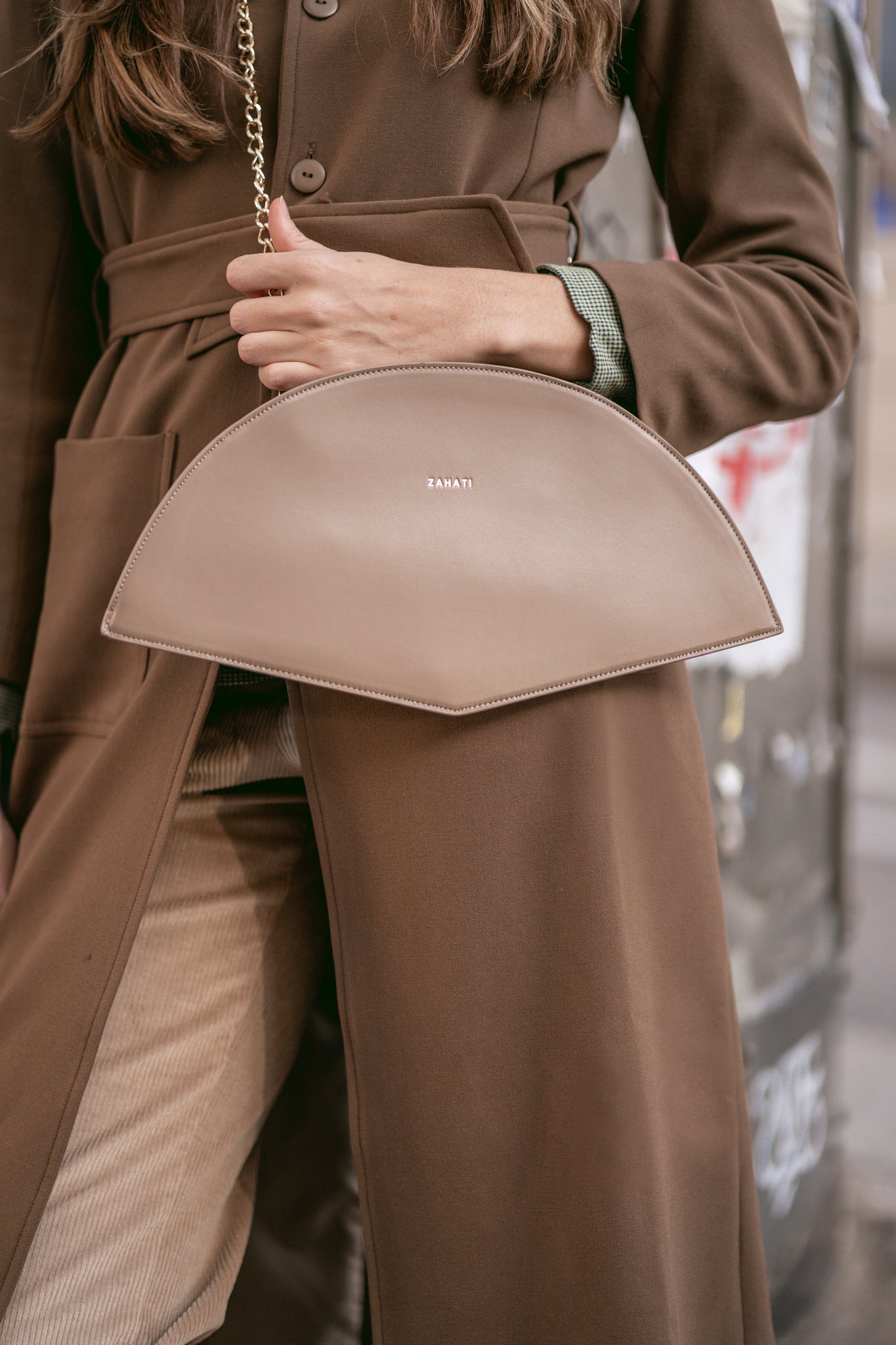 Suave, neutro y elegante. El Abanico Lissé en eco luxury leather topo es el complemento perfecto para quienes buscan versatilidad y estilo atemporal.