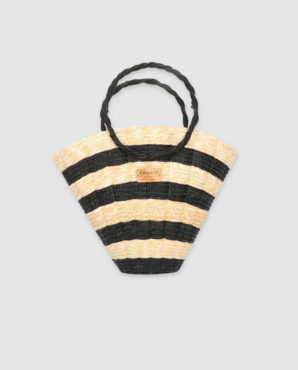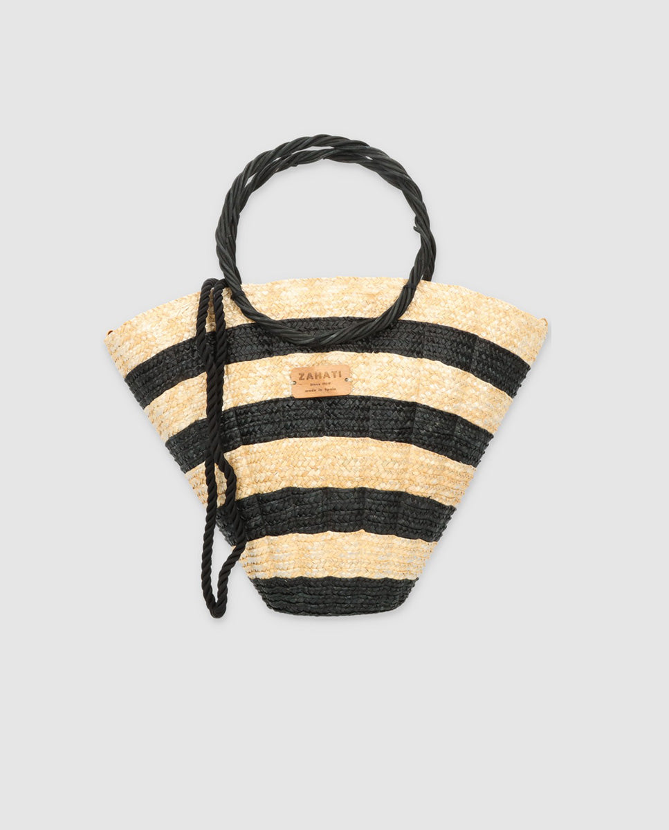 El bolso mini shelly esta inspirado en la textura de las conchas. Esta cosido formando ligeras curvas alrededor del bolso las cuales simulan esta textura. La versión grande del shelly bag es ideal para cualquier dia de primavera-verano. Creado en paja de trigo color negro y natural. Cierre magnetico. Lleva un cordón ajustable para poder colgarte el bolso.