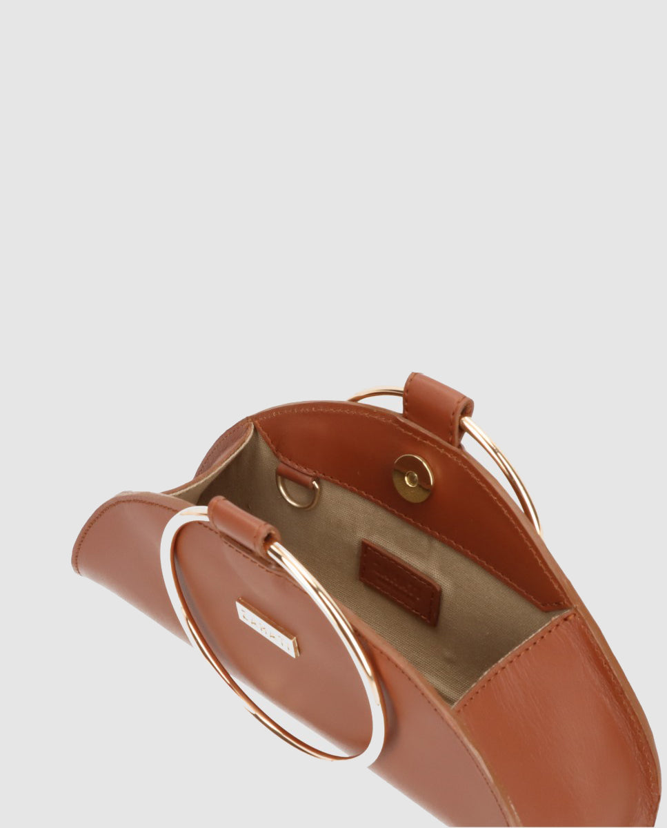 El Bolso Moon Mini es ideal para cualquier evento o salida de fin de semana. Le dará ese toque elegante a tu look. Está creado con cuero de vaquetilla. El asa circular es metálica en color dorado. El cierre es con iman. Incluye una cadena dorada para que te lo puedas colgar.