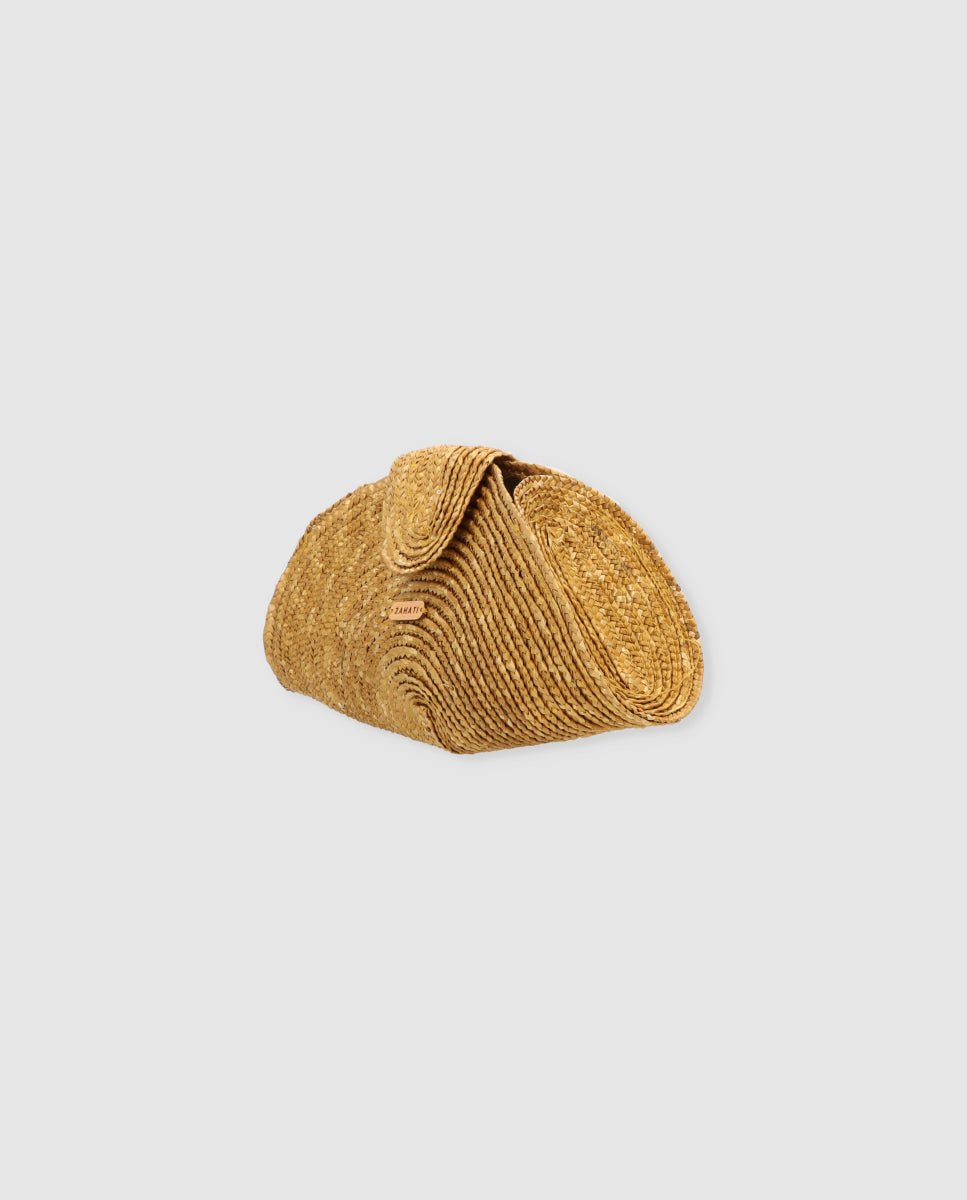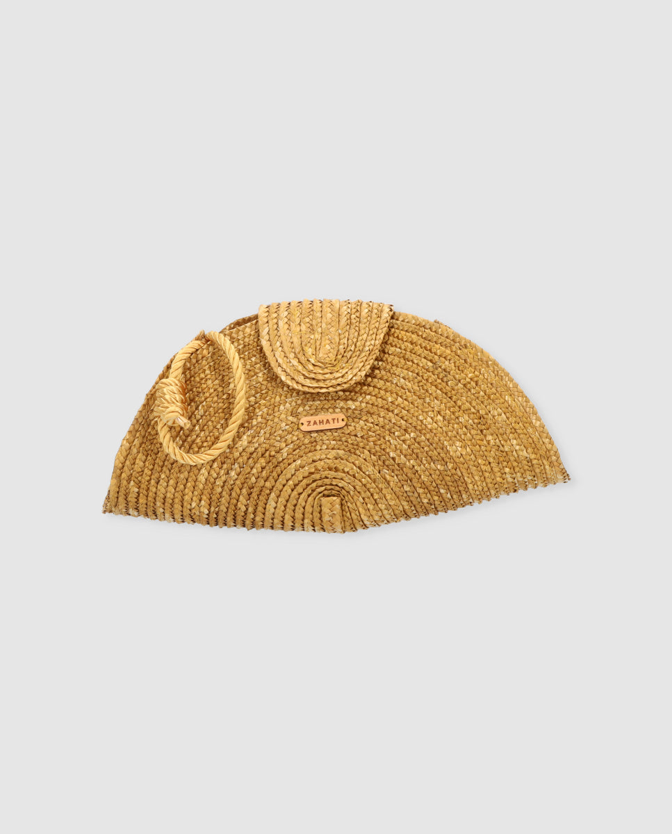 La cartera Chloe es ese bolso tipo clutch que eleva cualquier look en un segundo. Está realizada artesanalmente en paja trenzada, con un diseño semicircular de inspiración retro y mucha textura, ligera pero con cuerpo.