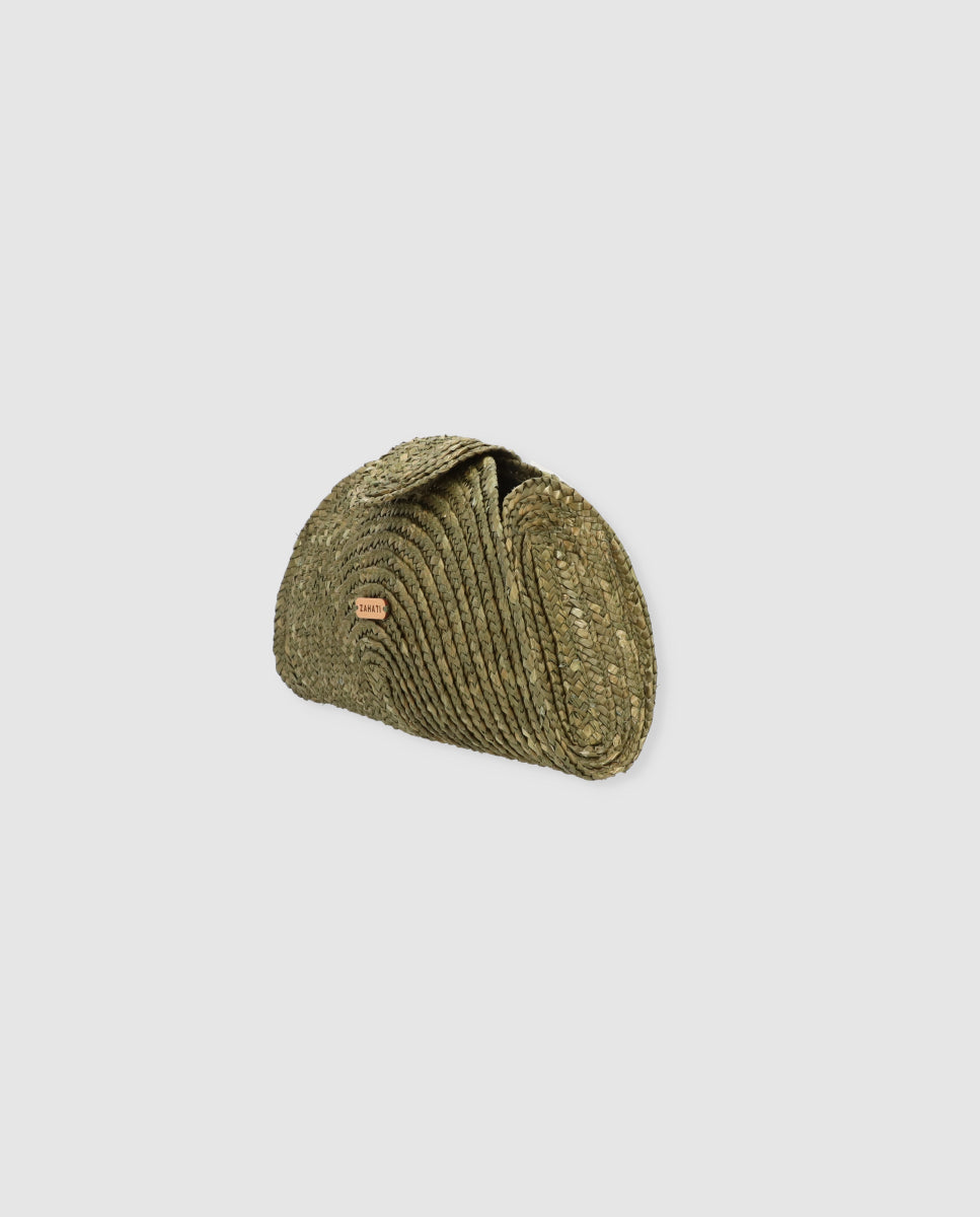 La cartera Chloe es ese bolso tipo clutch que eleva cualquier look en un segundo. Está realizada artesanalmente en paja trenzada, con un diseño semicircular de inspiración retro y mucha textura, ligera pero con cuerpo.