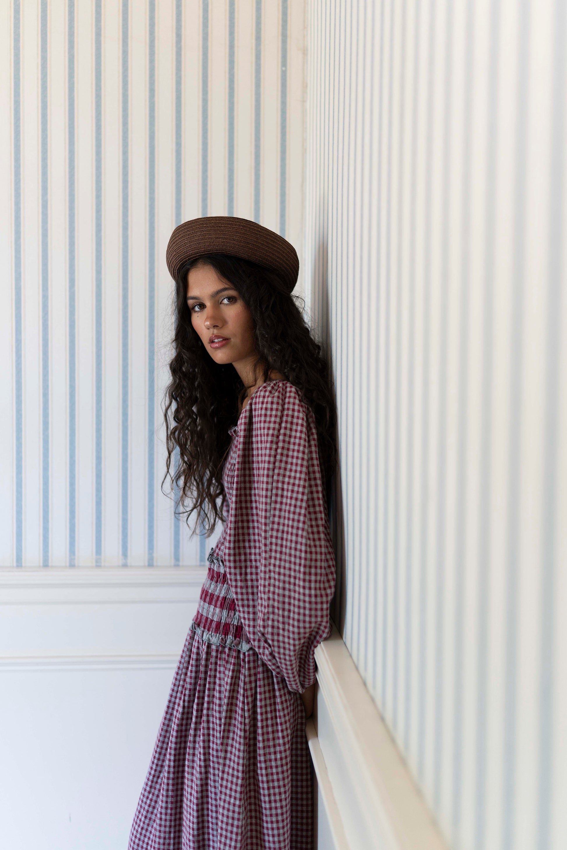 Inspirado en la elegancia retro de los años 50, este casquete en forma de halo enmarca el rostro con un volumen delicado y sofisticado. Cada pieza se elabora artesanalmente en nuestro taller de Gata de Gorgos, trenzando finas fibras de abacá en espiral para lograr una estructura ligera y resistente.