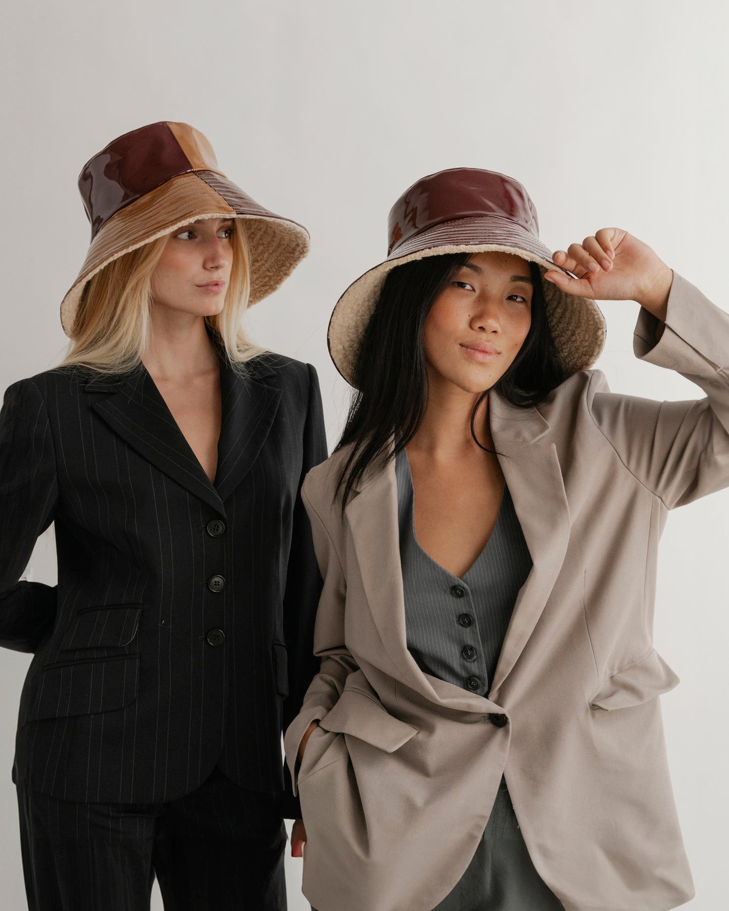 El sombrero Charolito es ideal para los dias de otoño invierno. Esta hecho con topo y burdeos. Forrado con borreguito de algodón. Es perfecto para lucir ideal en invierno con el toque super glamoroso que te dará el charol.