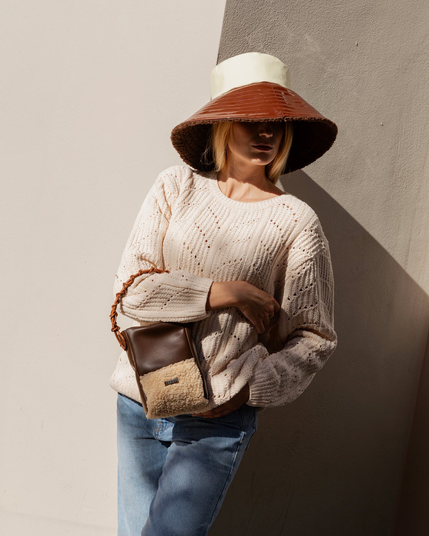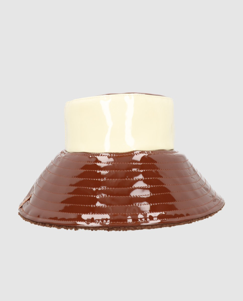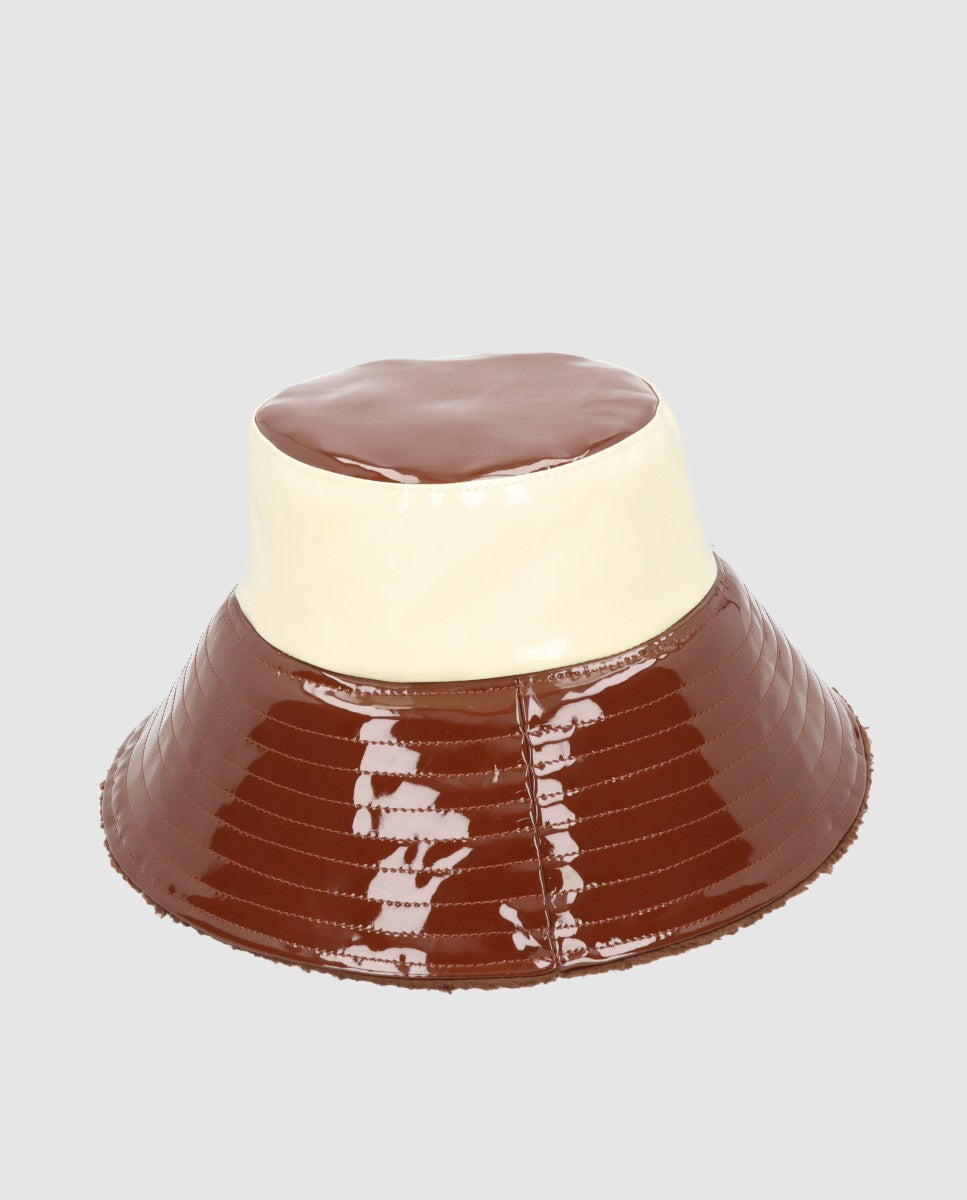 El sombrero Charolito es ideal para los dias de otoño invierno. Esta hecho en color tabaco y hielo. Forrado con borreguito de algodón. Es perfecto para lucir ideal en invierno con el toque super glamoroso que te dará el charol.