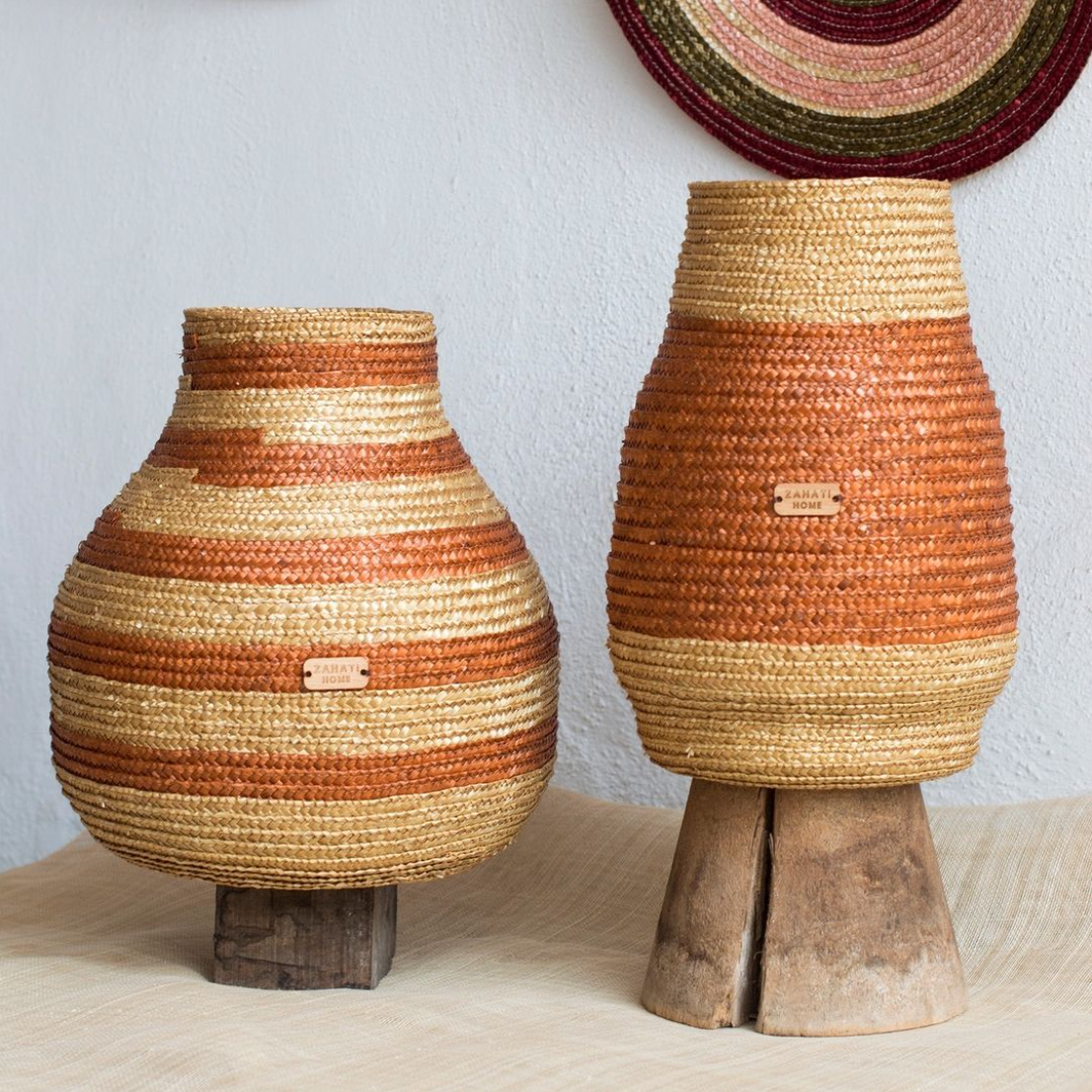 El Jarrón Nectarina de paja natural, diseñado y confeccionado en nuestro taller de Gata de Gorgos.