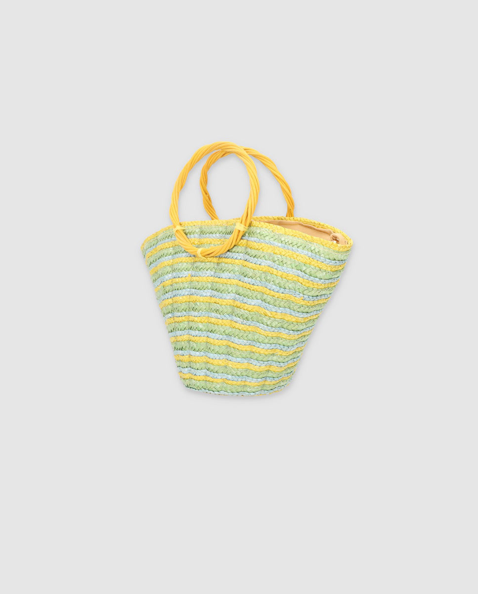 El bolso mini shelly esta inspirado en la textura de las conchas. Esta cosido formando ligeras curvas alrededor del bolso las cuales simulan esta textura. La versión mini del shelly bag es ideal tanto para un evento como para uso diario un día de primavera-verano. Creado en paja de trigo pistacho, baby blue, amarillo. Cierre magnetico. Lleva un cordón ajustable para poder colgarte el bolso.