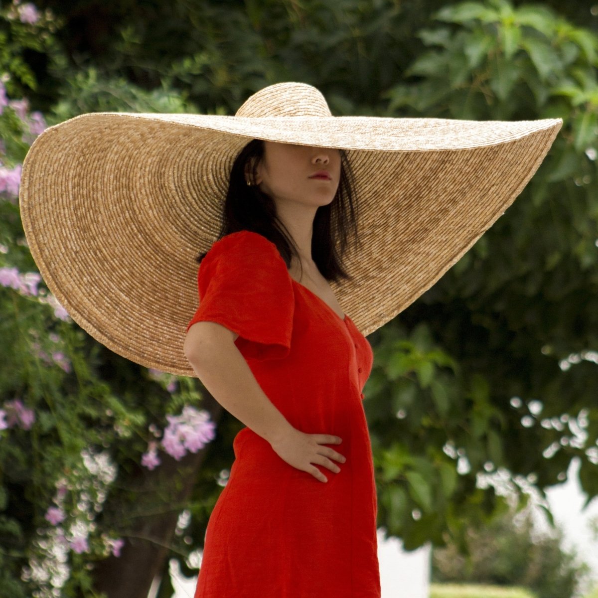 La pamela maxi xxl esta hecha con paja natural de trigo trenzada a mano en color natural. Esta pamela es la gran protagonista de grandes editoriales de moda.